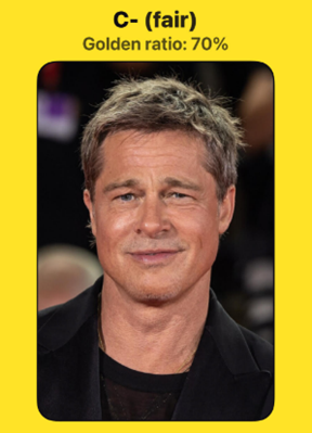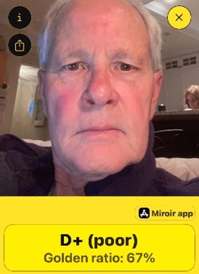 The Golden Ratio Face app rated me a D+ or poor since I met only 67% of the perfect face criteria.